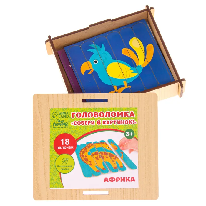 Головоломка. Собери 6 картинок «Африка», двусторонние палочки — Характеристики