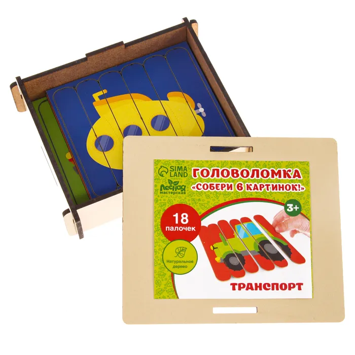 Головоломка «Собери 6 картинок. Транспорт», двусторонние палочки — Характеристики