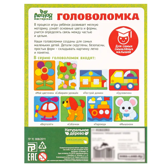 Головоломки совершенно безопасны для детей. Простые формы позволяют собирать головоломку легко и понятно.