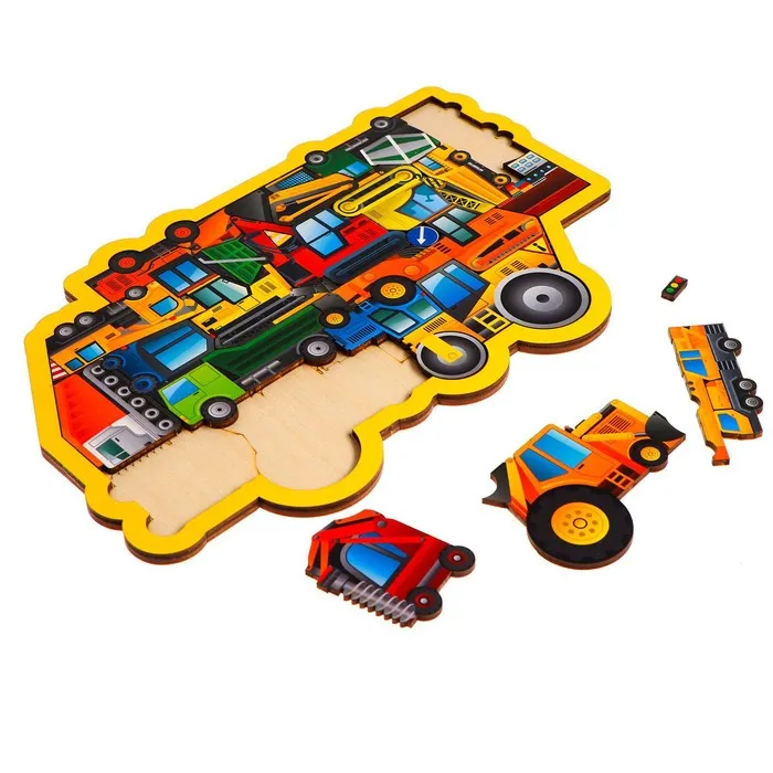 Головоломка из отдельных фигурок - это не только игра в предложенной рамке, но и игра с деталями. Перед сборкой можете спросить у малыша название каждого вида транспорта, где он применяется.