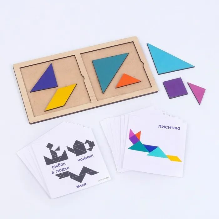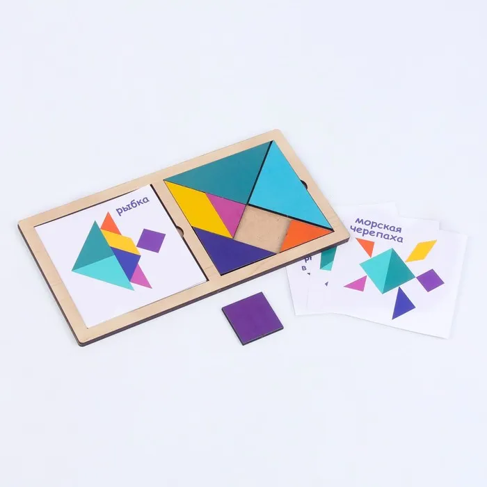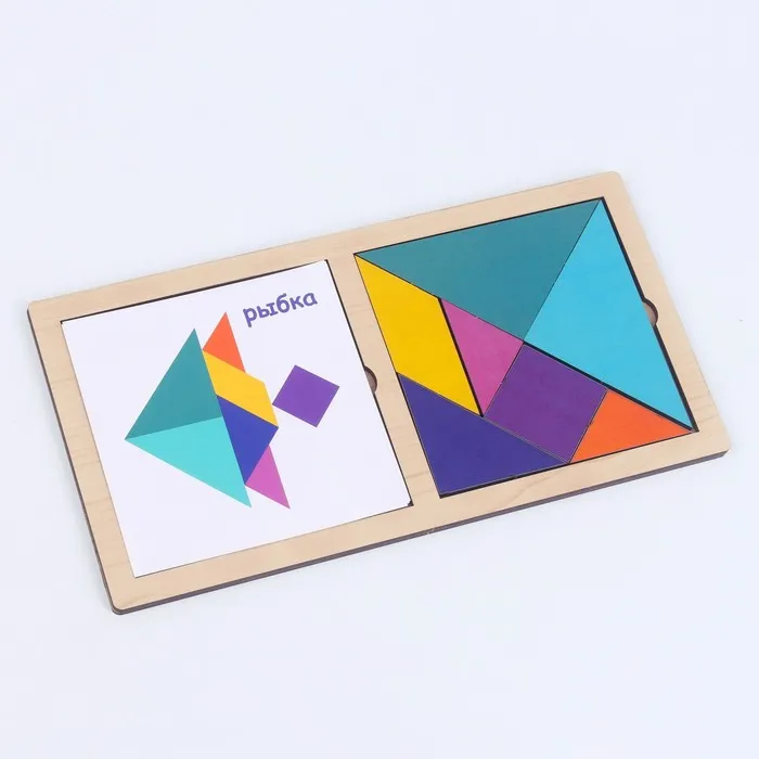 Головоломка «Танграм» — это классическая игра из 7 деревянных элементов, которая помогает развивать логику, воображение и мелкую моторику. Подходит для детей от 3 лет, она превращает обучение в увлекательное занятие, где каждый сможет создавать свои уникальные фигуры или собирать готовые схемы.