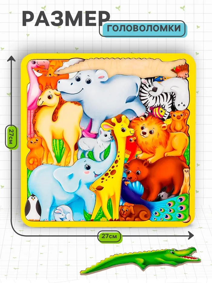Головоломка «Животные мира», 26 деталей, 27×27 см — Характеристики