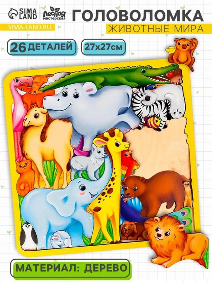 Головоломка «Животные мира», 26 деталей, 27×27 см