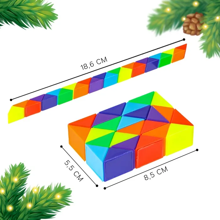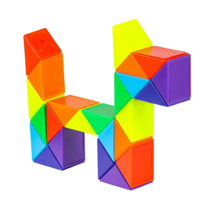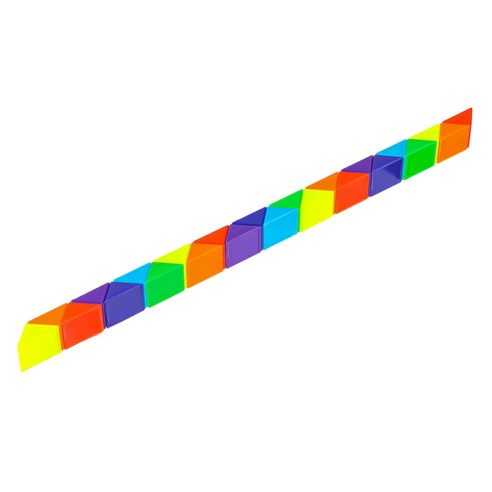 Эта пластиковая головоломка выполнена в форме змейки и состоит из 24 равнобедренных треугольников. Благодаря своей гибкости и прочности, головоломка легко собирается в различные геометрические фигуры, животных и предметы.