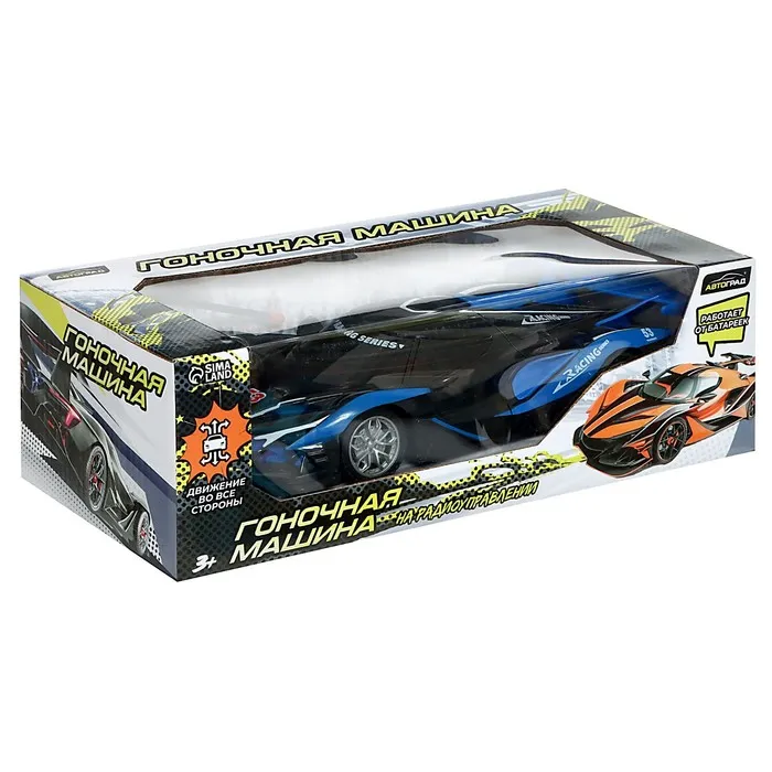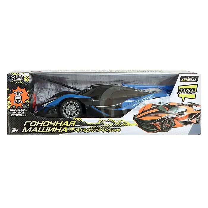 Гоночная машина на радиоуправлении, работает от батареек, цвет сине-чёрный — Характеристики