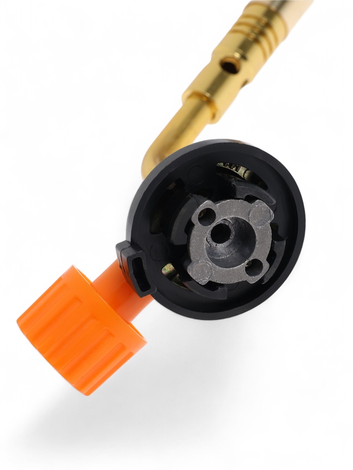 Чтобы собрать всю конструкцию, прикрепите к портативной насадке баллон с газом.