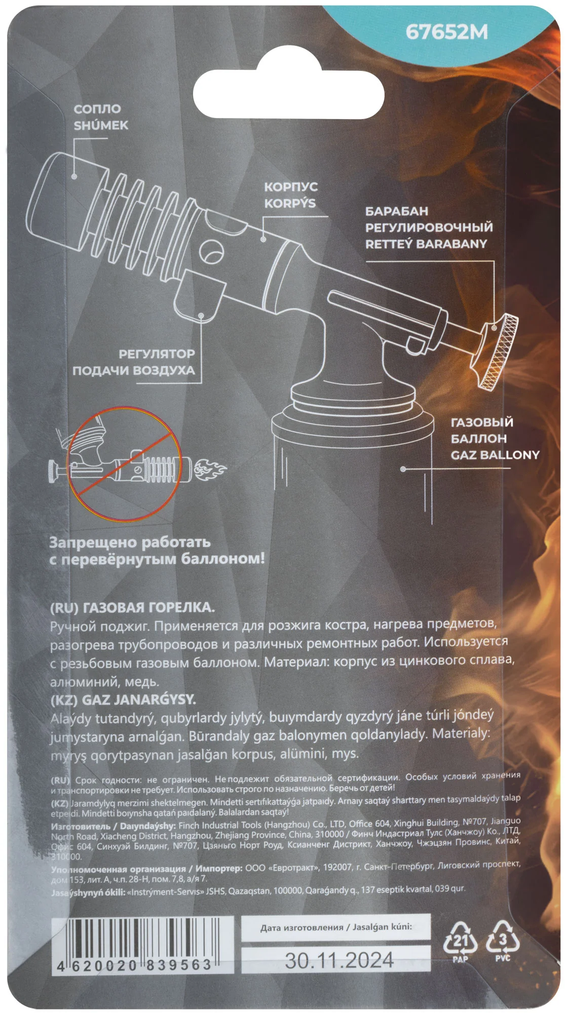 Эта газовая горелка идеально подходит для розжига костра, разогрева трубопроводов и выполнения различных ремонтных работ. Используйте её с цанговым баллоном, чтобы обеспечить стабильное и мощное пламя, достигающее температуры до 1300 °C.