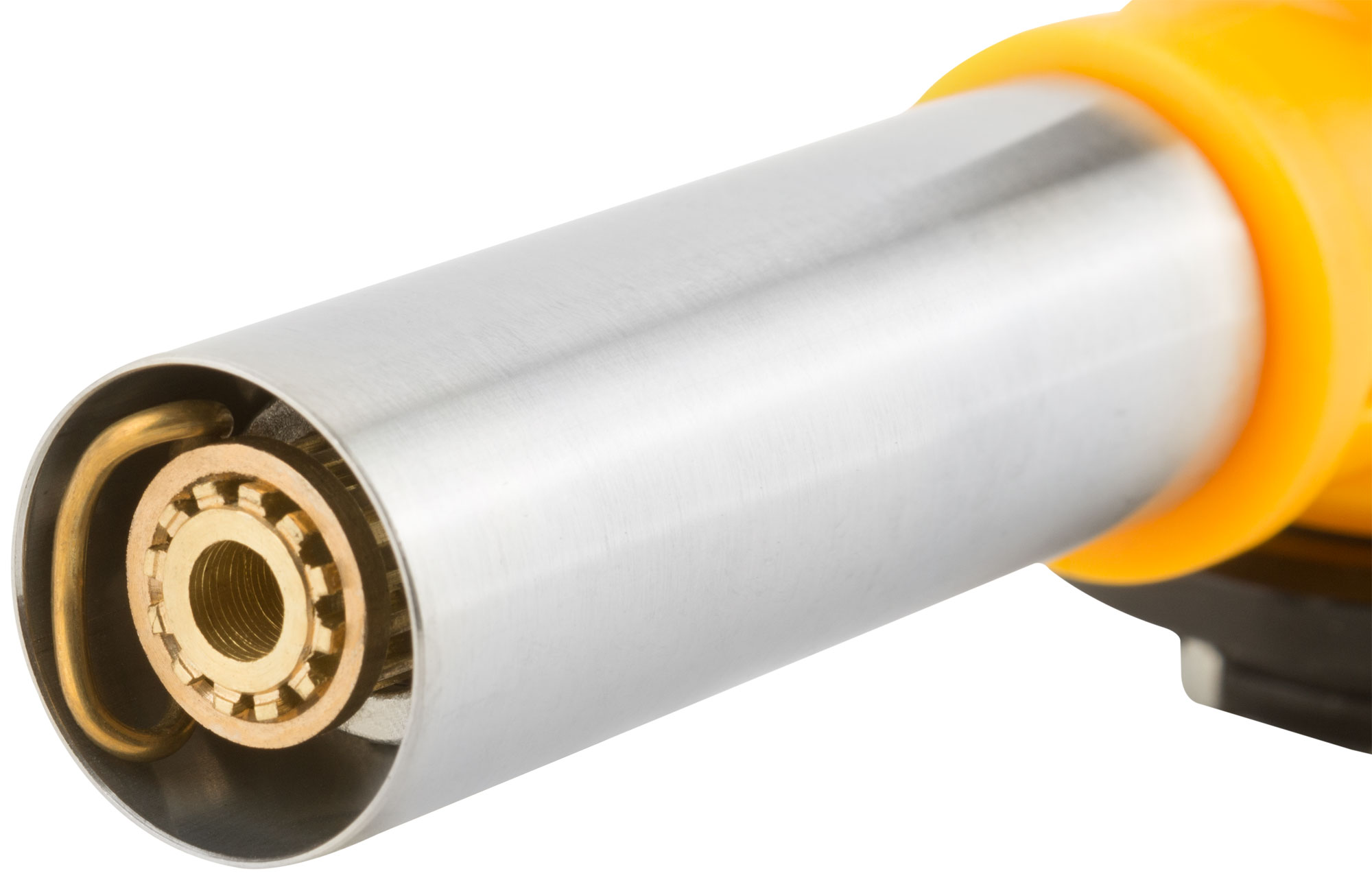 Горелка оснащена латунным соплом и камерой предварительного нагрева газа, что обеспечивает надежную и долговечную работу устройства. Корпус выполнен из ударопрочного ABS пластика, а ствол — из нержавеющей стали. Посадочная часть изготовлена из цинкового сплава, что добавляет прочности конструкции.
