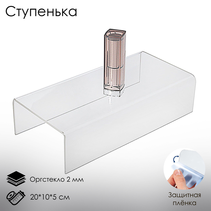 Горка 2 ступеньки 40*21*20 см, оргстекло 2,5 мм, в защитной плёнке — это практичное и элегантное решение для организации пространства. Изготовленная из прочного оргстекла, эта горка идеально подходит для выставок, магазинов или для использования в домашних условиях, обеспечивая надежную поддержку для размещения различных товаров или предметов.