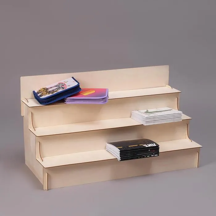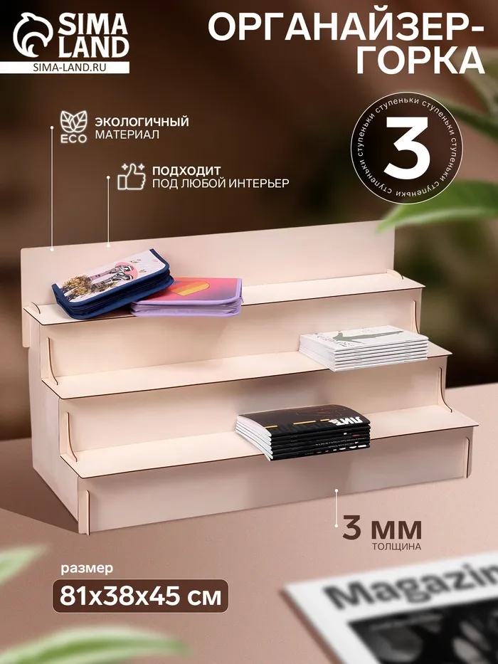 Компактная настольная горка с тремя ступеньками — это практичный и универсальный аксессуар для организации пространства. Ее размеры 81×38×45 см позволяют легко разместить ее в детской комнате или игровой зоне, обеспечивая безопасный и удобный доступ к различным уровням. Изготовленная из фанеры толщиной 3 мм, она отличается прочностью и долговечностью, сохраняя при этом легкий вес и эстетичный внешний вид.
