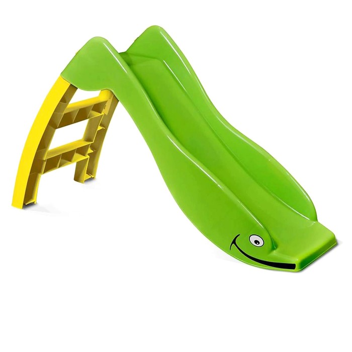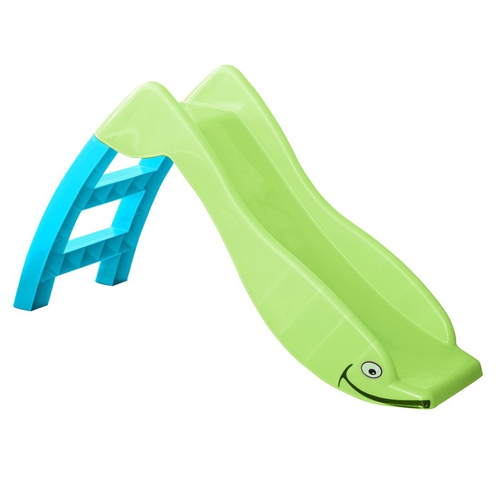 - Тематический дизайн: Горка оформлена в морском стиле с изображением дельфина. Голубые и жёлтые элементы создают солнечное настроение.