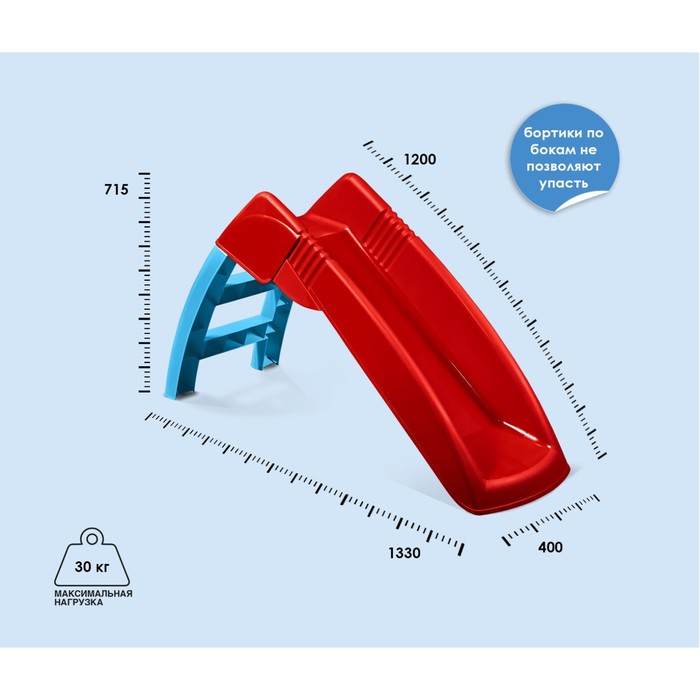 - Два ярких оттенка: Сочетание насыщенных цветов делает горку заметной на любом фоне. Дизайн привлекает внимание детей и вписывается в разные игровые зоны.