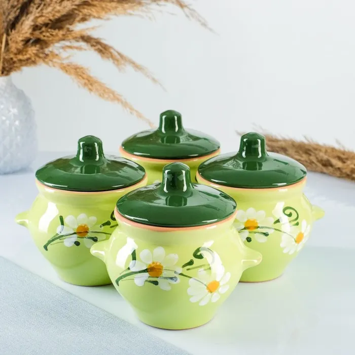 Горшки для запекания Борисовская керамика «Классика», 500 мл, набор 4 шт., зелёные — Характеристики