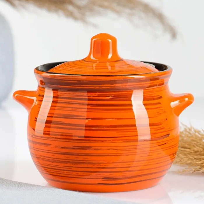 Горшочек для запекания Борисовская керамика «Тигровая», 650 мл, 12,5×11,5 см, керамика, оранжевая — Характеристики