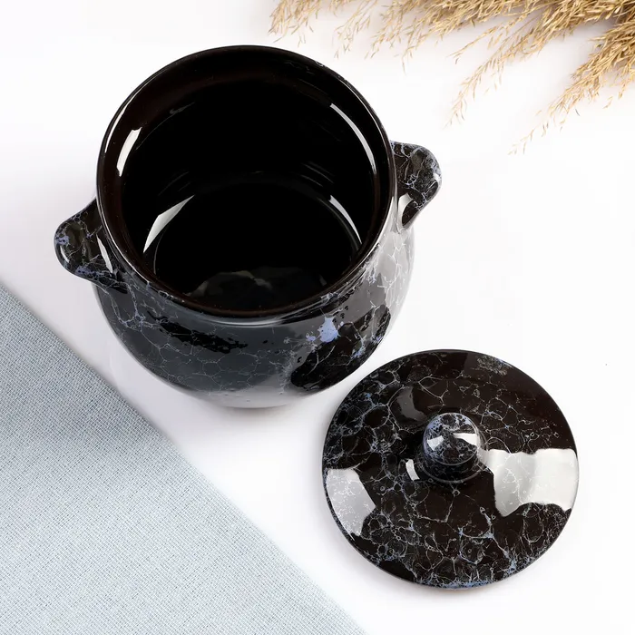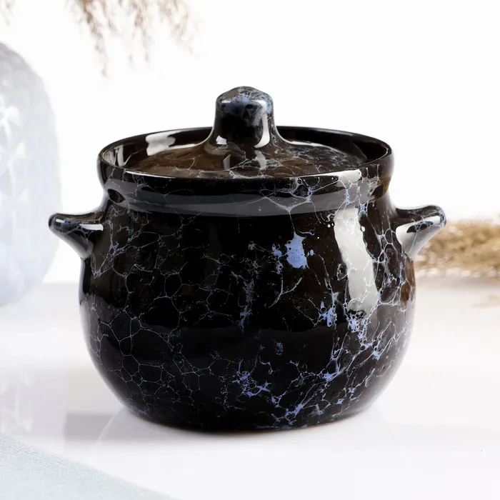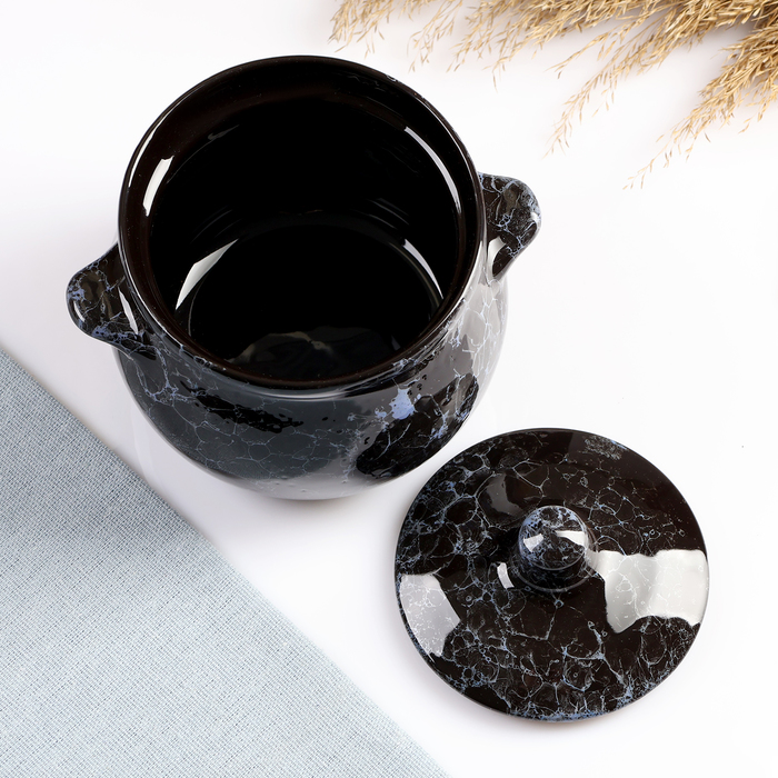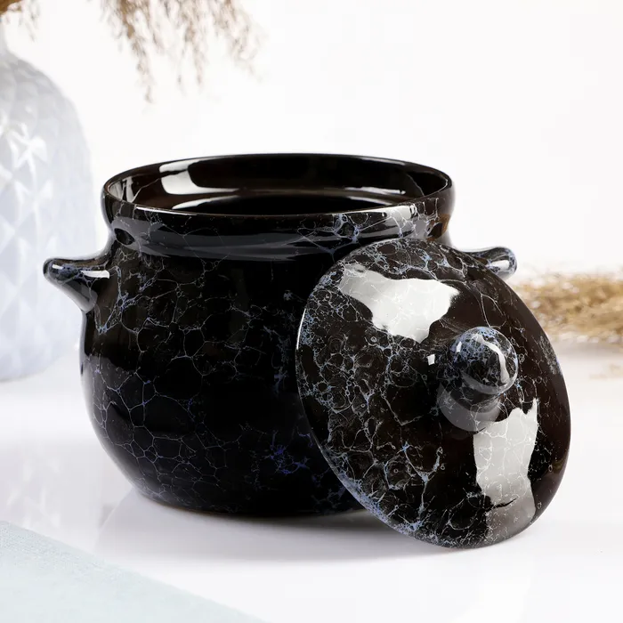 Горшочек для запекания Борисовская керамика «Мрамор», 650 мл, 12×12 см, керамика, чёрный