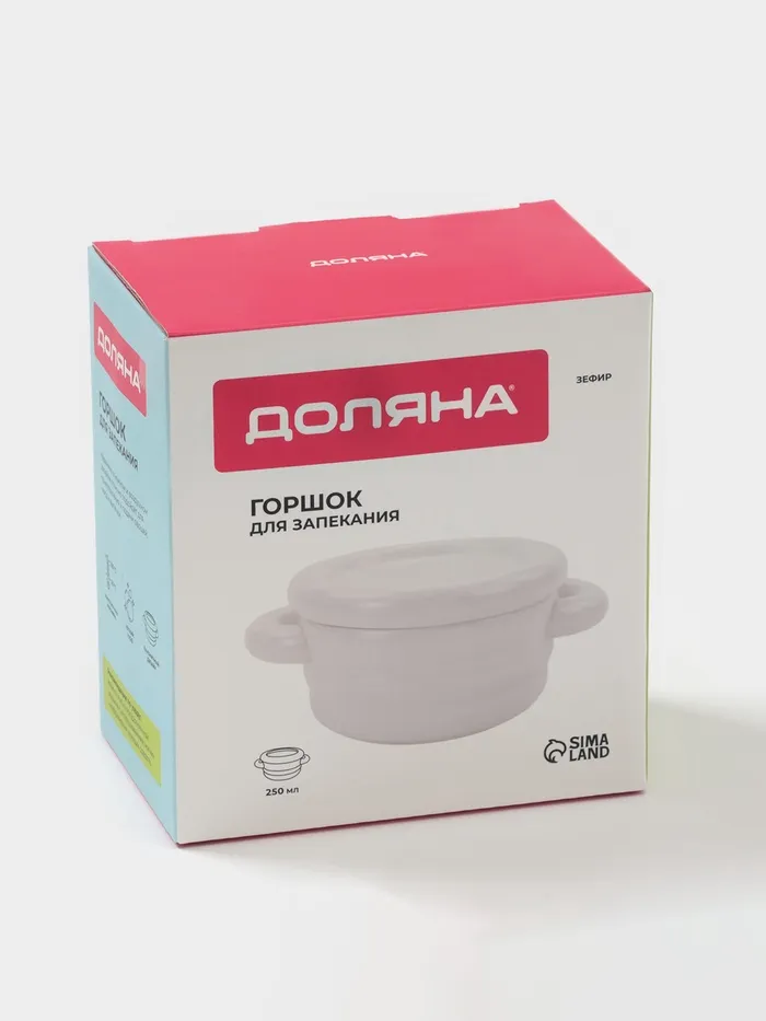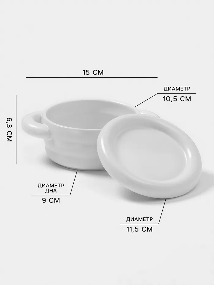 Горшочек для запекания Доляна «Зефир», 250 мл, 15×10.5×6.3 см, с ручками, с крышкой, керамика, белый — Характеристики
