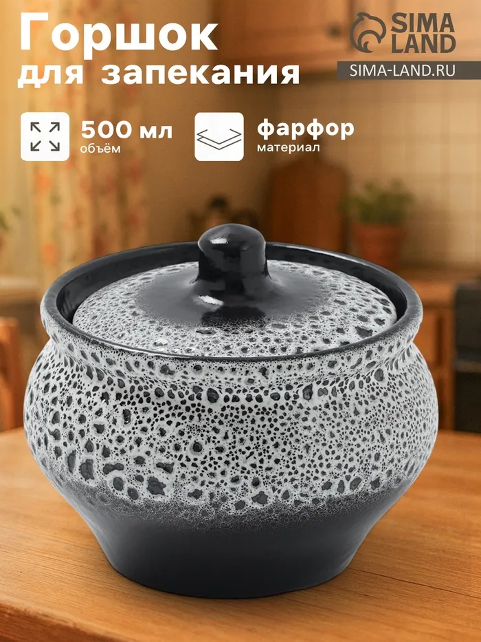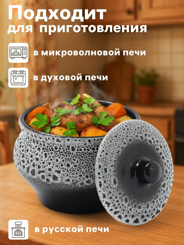 Откройте для себя идеальную посуду для запекания — «Фарфоровый котелок» в стильных черно-серых тонах, который станет вашим верным помощником на кухне. Этот горшок подходит для кулинарного творчества, добавляя изысканности каждому блюду благодаря его современному дизайну и практичным особенностям.
