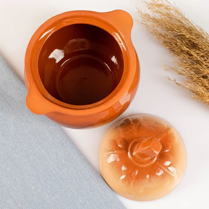 Горшочек для запекания Кунгурская керамика «Луговой», 600 мл, с ручками, керамика, оранжевый — Характеристики