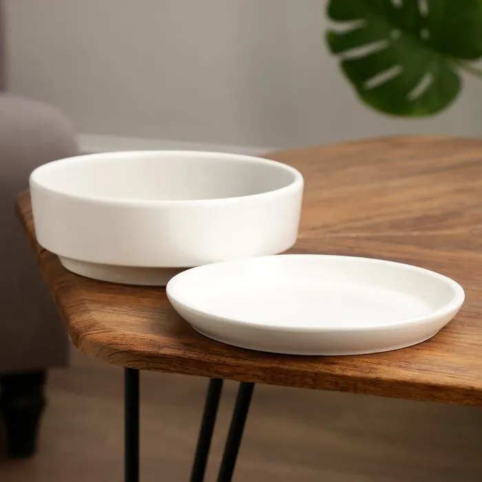 Горшок - бонсайница «Огма» керамический, для кактусов и суккулентов, 1.4 л, 18×6.5 см, с поддоном, белый — Характеристики