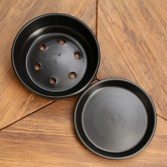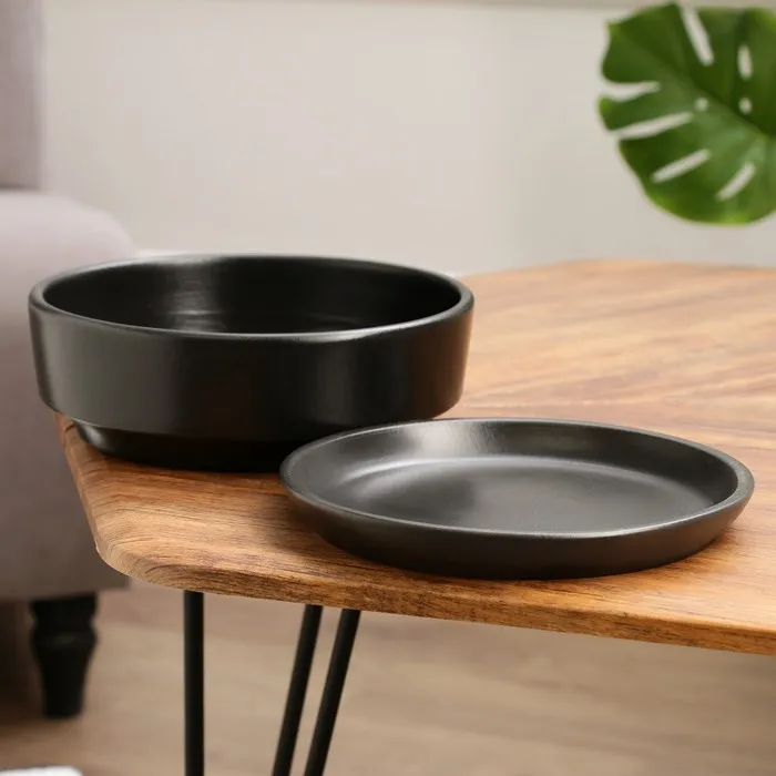 Горшок - бонсайница «Огма» керамический, для кактусов и суккулентов, 2 л, с поддоном, чёрный — Характеристики