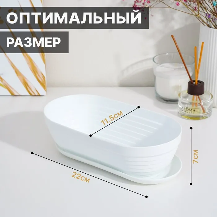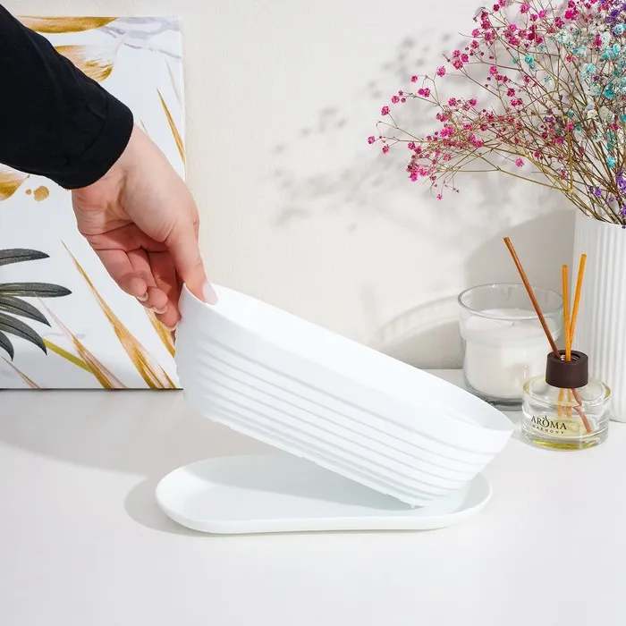 Горшок для кактуса с поддоном «Алиса», 900 мл, пластиковый, белый