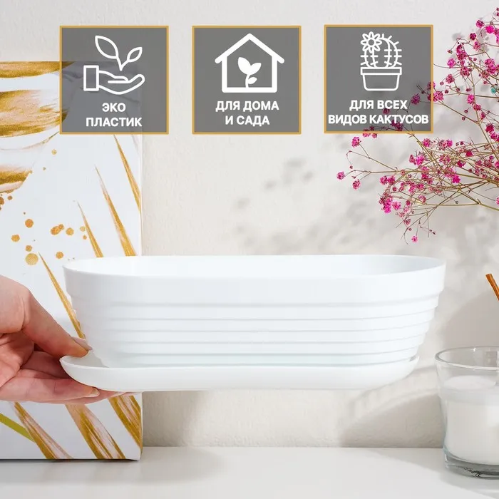 Горшок для кактуса с поддоном «Алиса», 900 мл, пластиковый, белый — Характеристики