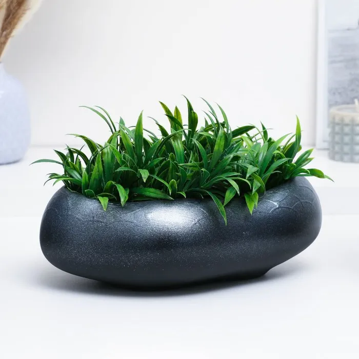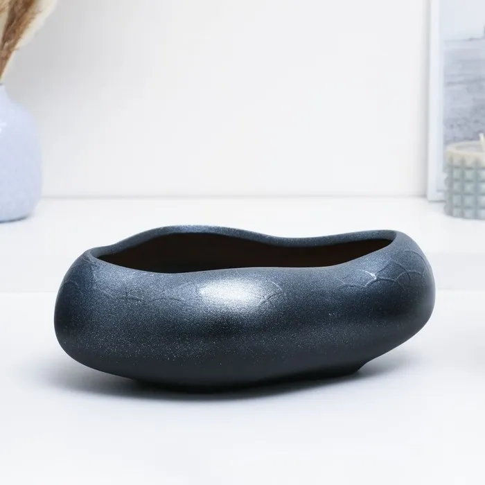 Горшок для кактусов и суккулентов «Бонсай», 2.3 л, 28×24 см, керамический, чёрный, серебристый — Характеристики