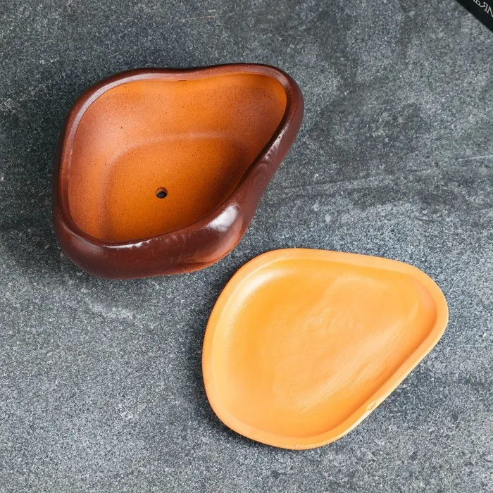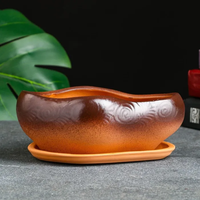 Горшок для кактусов и суккулентов «Бонсай», 600 мл, 17×14×8 см, керамический, с поддоном, коричневый