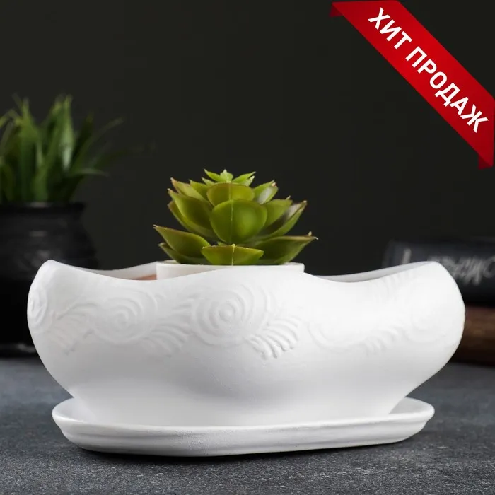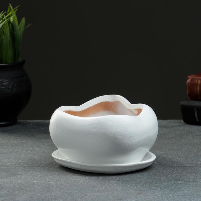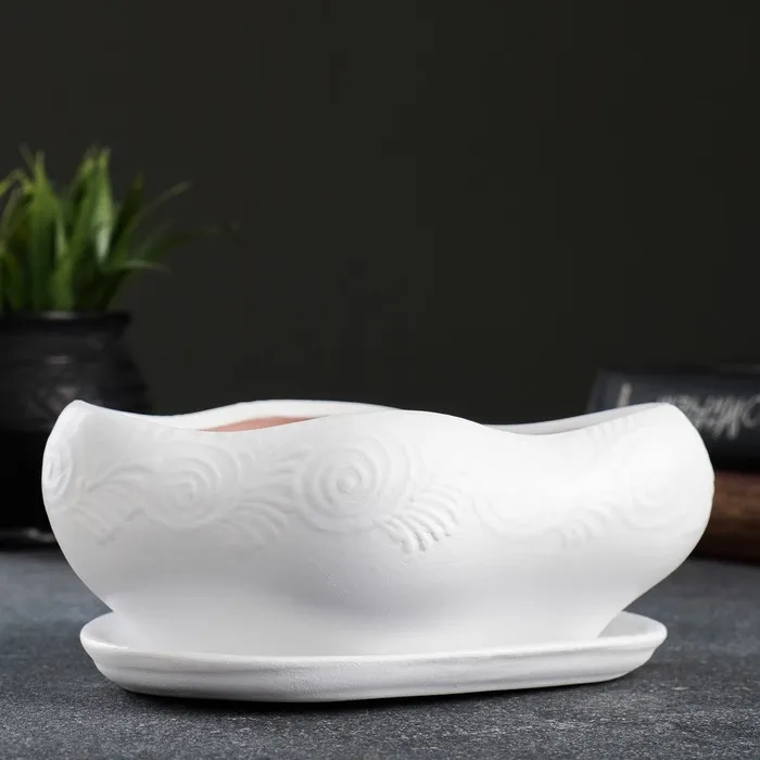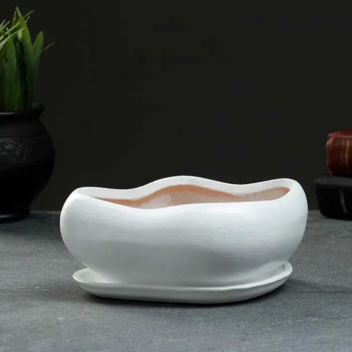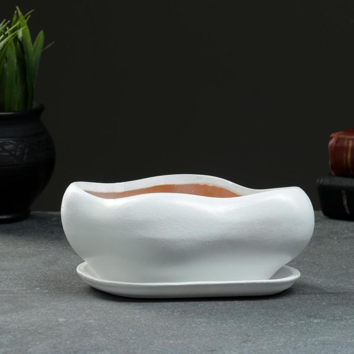 Горшок для кактусов и суккулентов «Бонсай», 600 мл, 18×14 см, керамический, с поддоном, белый — Характеристики