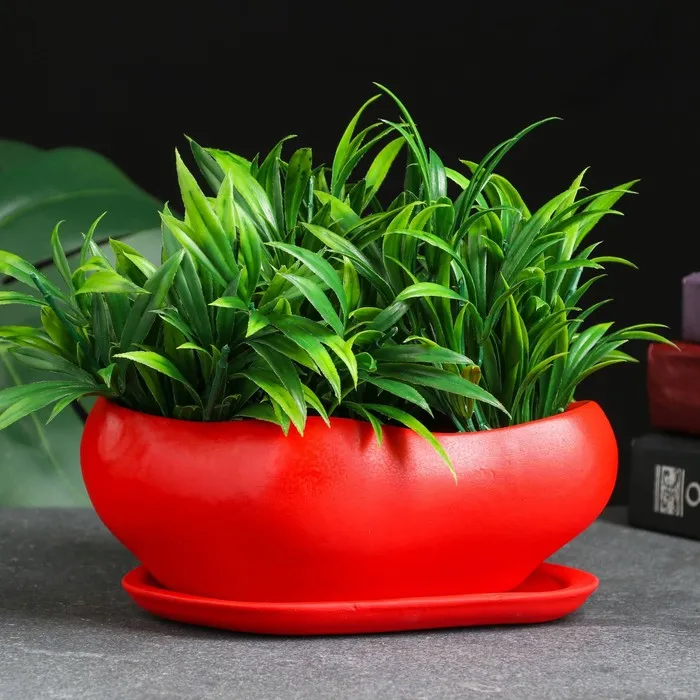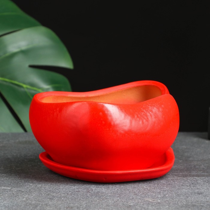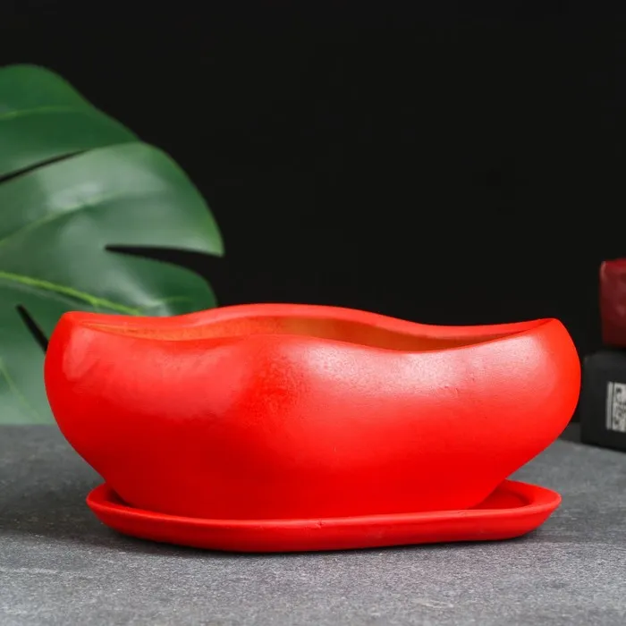 Горшок для кактусов и суккулентов «Бонсай», 600 мл, 18×14 см, керамический, с поддоном, красный — Характеристики