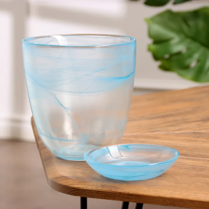 Горшок для орхидей «Гармония», стеклянный, с поддоном, 1 л, прозрачный с голубым рисунком — Характеристики