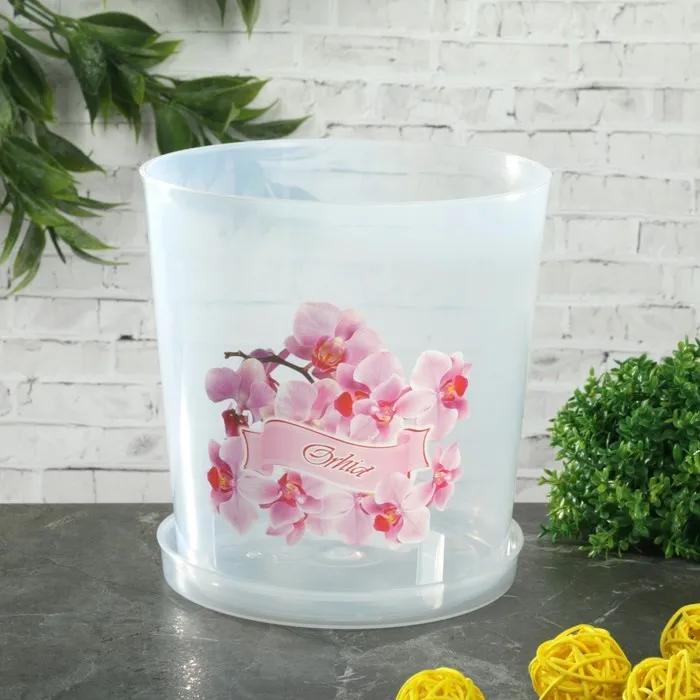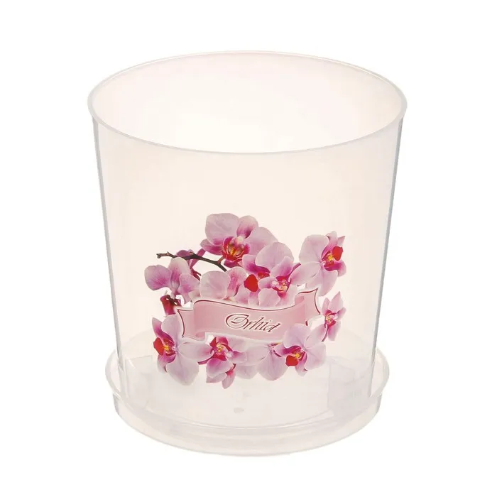 Горшок для орхидей с поддоном, 1.8 л, пластиковый, прозрачный, МИКС — Характеристики