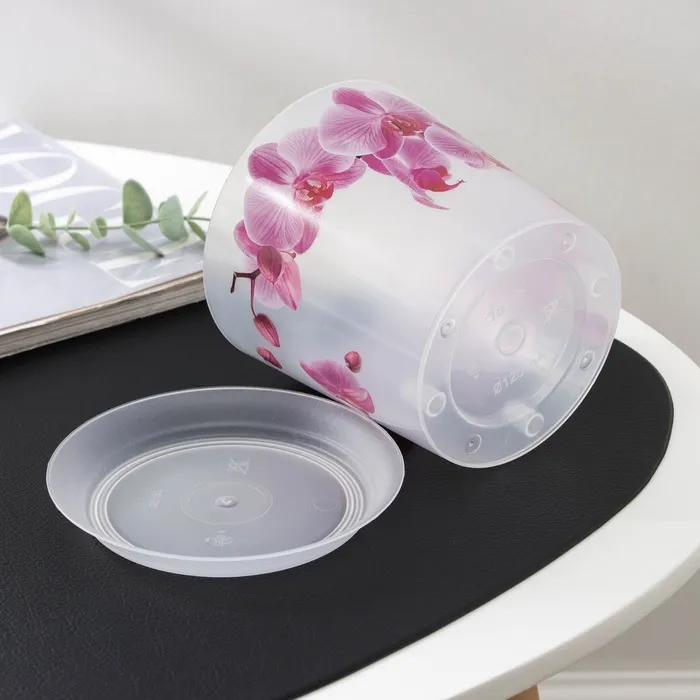 Горшок для орхидей с поддоном IDEA «Деко», 1.2 л, пластиковый, прозрачный