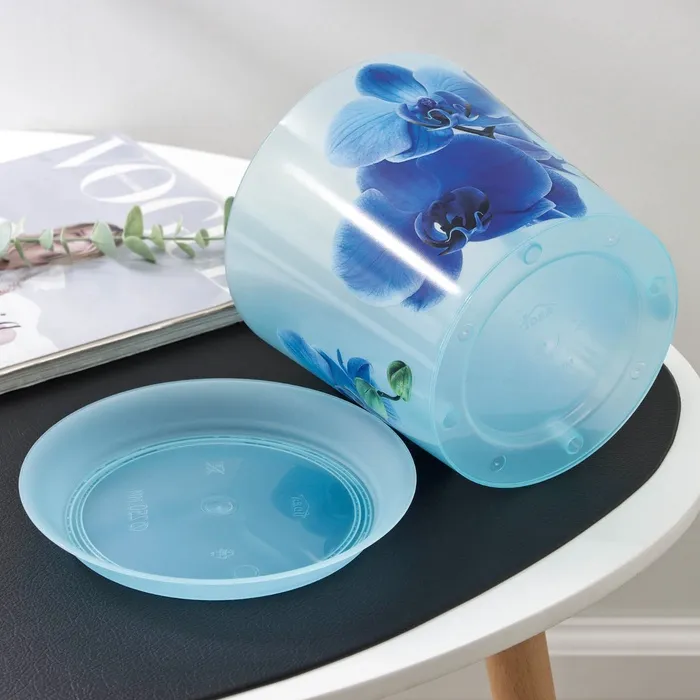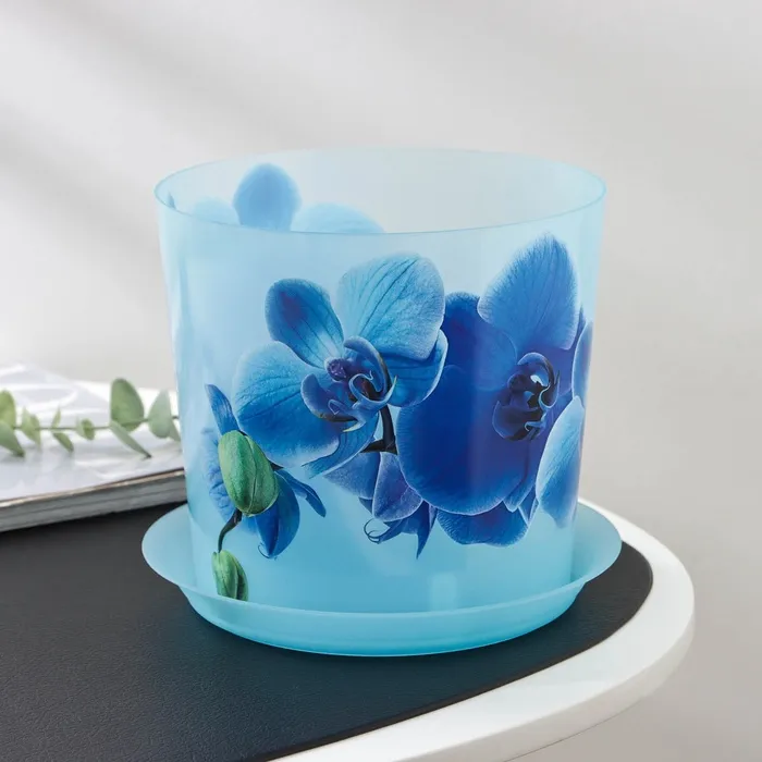 Горшок для орхидей с поддоном IDEA «Деко», 2.4 л, пластиковый, голубой