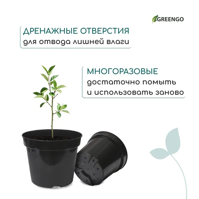 Горшок для рассады, 10 л, d=29 см, h=22.5 см, чёрный, Greengo — Характеристики