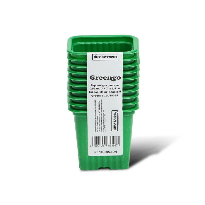 Горшок для рассады, 210 мл, d=7 см, h=6.5 см, зелёный, в наборе 10 шт., Greengo — Характеристики