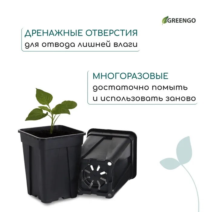 Горшок для рассады, 250 мл, d=6.7 см, h=8 см, пластик, чёрный, Greengo — Характеристики