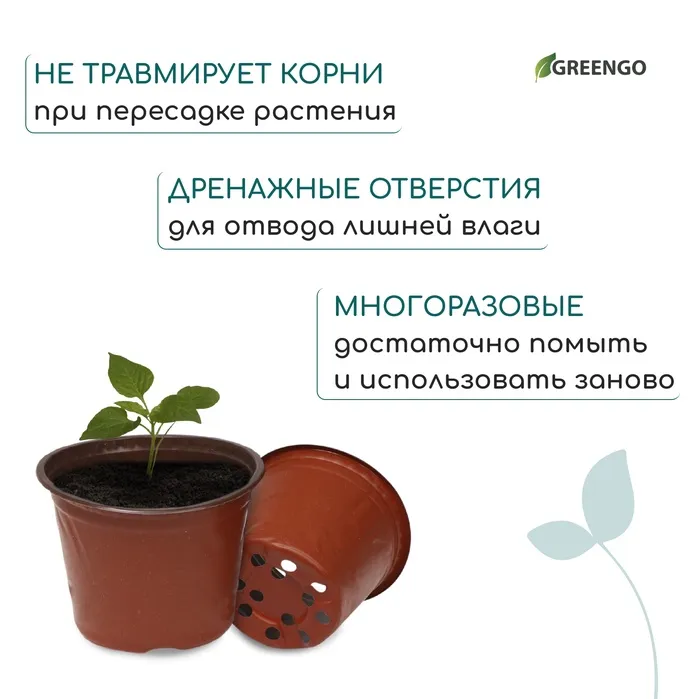 Горшок для рассады, 700 мл, d=12 см, h=9.5 см, мягкий пластик, терракот, Greengo — Характеристики