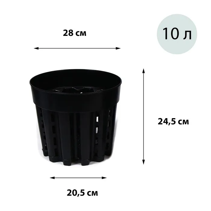 Горшок для рассады AirPot, 10 л, d = 28 см, h = 24,5 см, чёрный — Характеристики