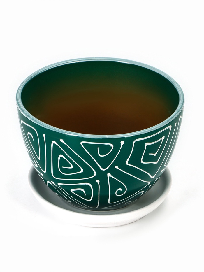 Горшок для цветов «Абстракция», 1.65 л, d=17 см, h=13 см, керамика, с поддоном, зелёный — Характеристики