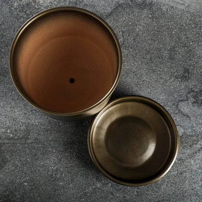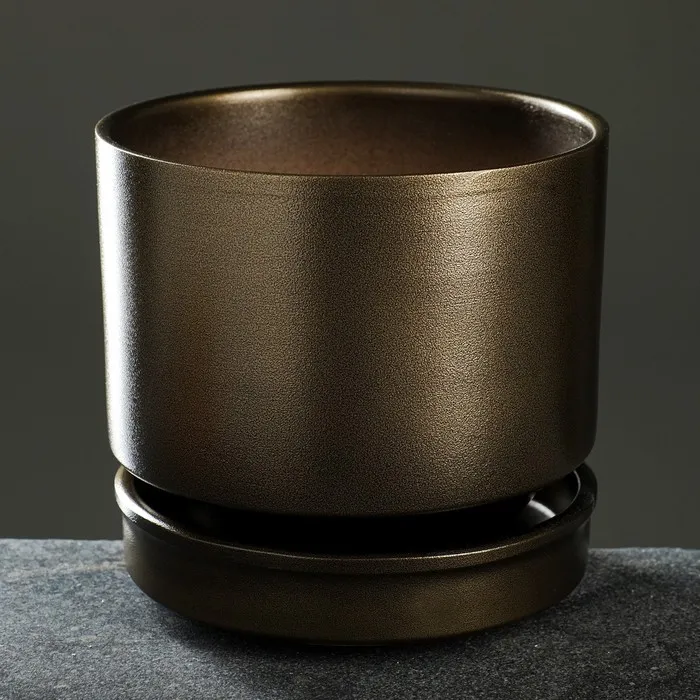 Горшок для цветов «Афродита», керамический, с поддоном, 3.4 л, коричневый/тёмное золото — Характеристики