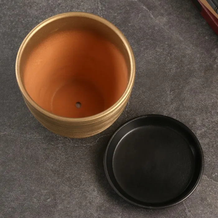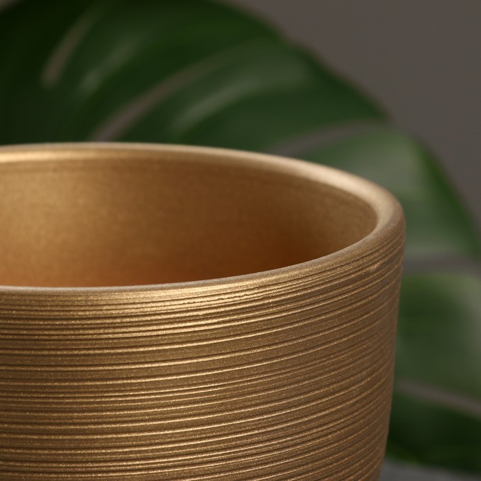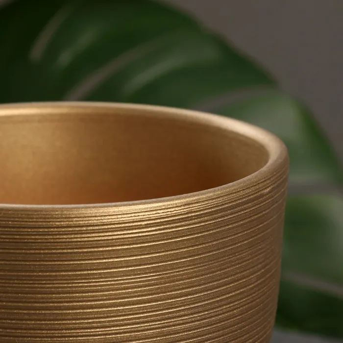 Горшок для цветов «Амелия», 2.4 л, d=17 см, h=16 см, керамика, с поддоном, золотистый — Характеристики
