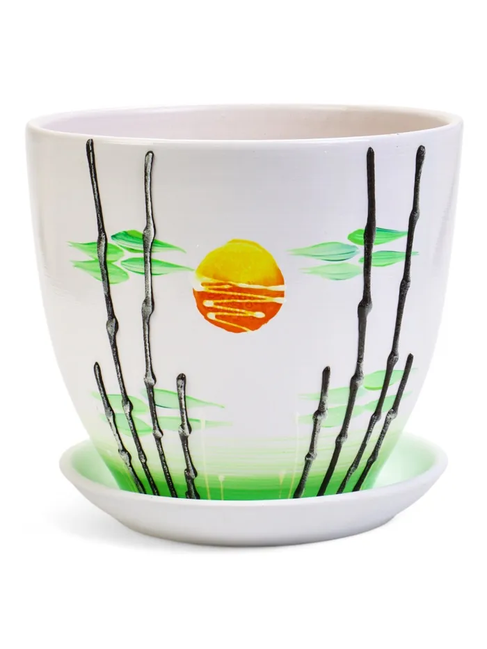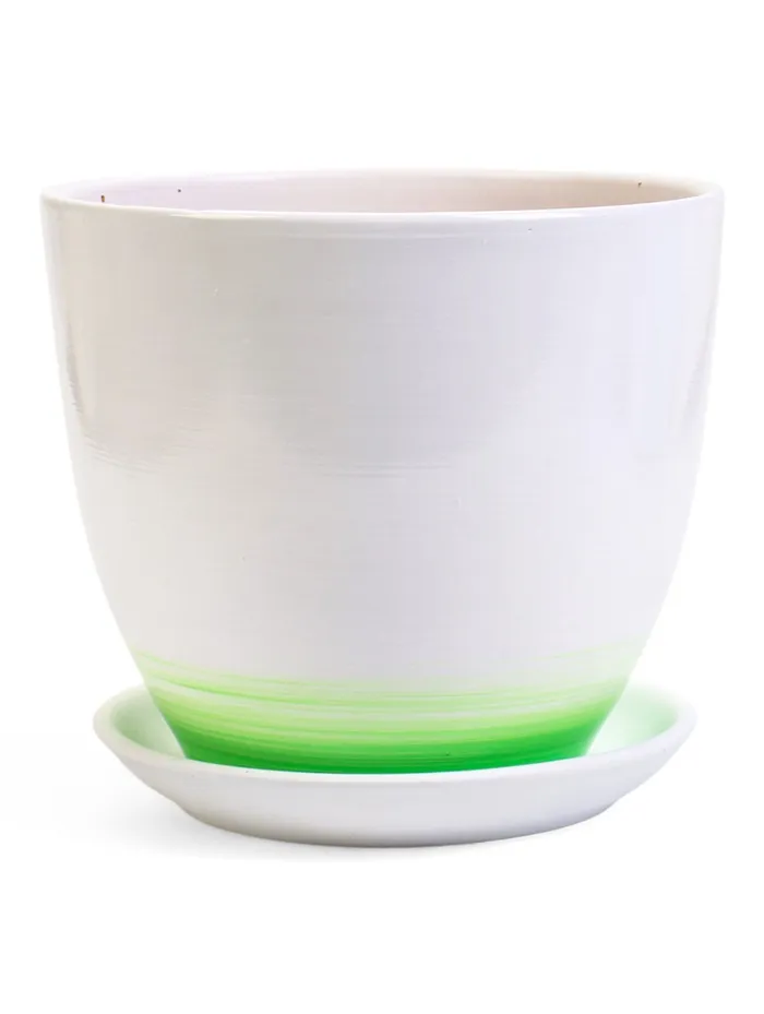 Керамический горшок «Азия» объёмом 5 литров - практичное решение для крупных комнатных растений. С диаметром 22 см и высотой 19,5 см он идеально подходит для монстер, диффенбахий или крупных фикусов. Белоснежная глазурь придаёт стильный вид, а входящий в комплект поддон защищает поверхности от излишков воды. Качественная керамика обеспечивает устойчивость и долговечность.