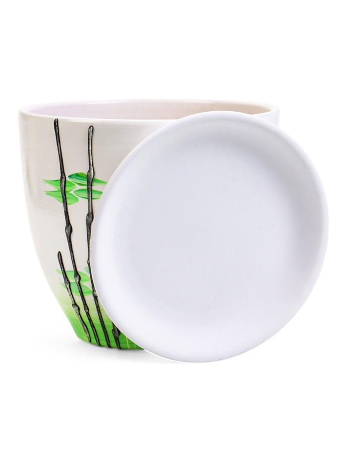 Горшок для цветов «Азия», 5 л, d=22 см, h=19.5 см, с поддоном, керамика, белый — Характеристики