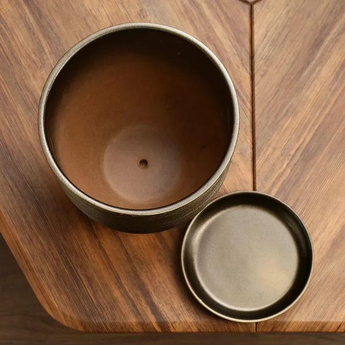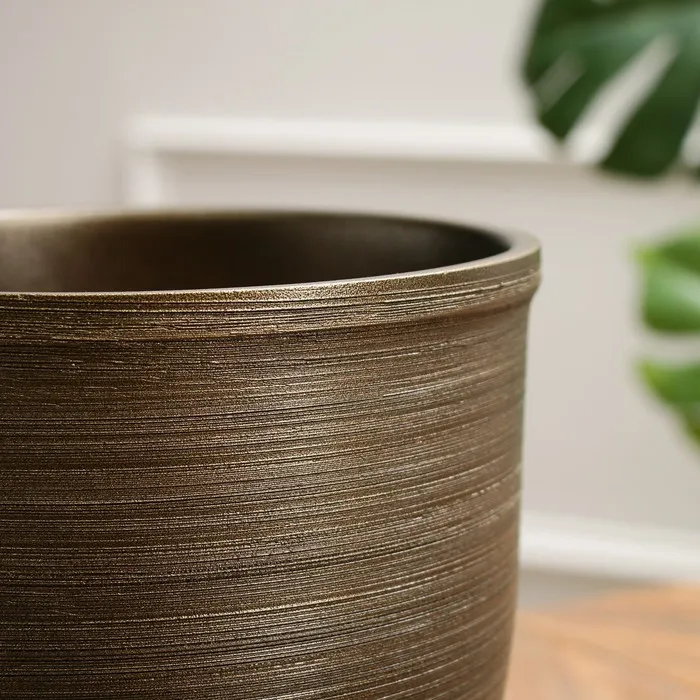 Горшок для цветов «Чёрное золото», керамический, с поддоном, 5 л, коричневый с золотой полосой — Характеристики