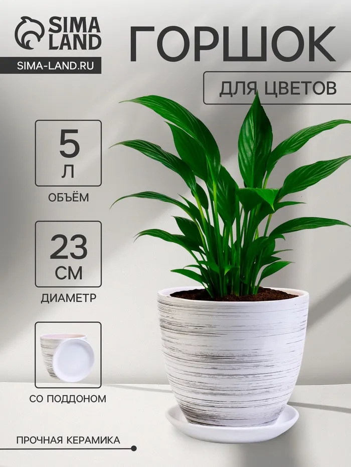 Горшок для цветов «День», 5 л, d=23 см, h=21 см, керамика, с поддоном, белый — Характеристики