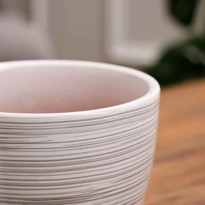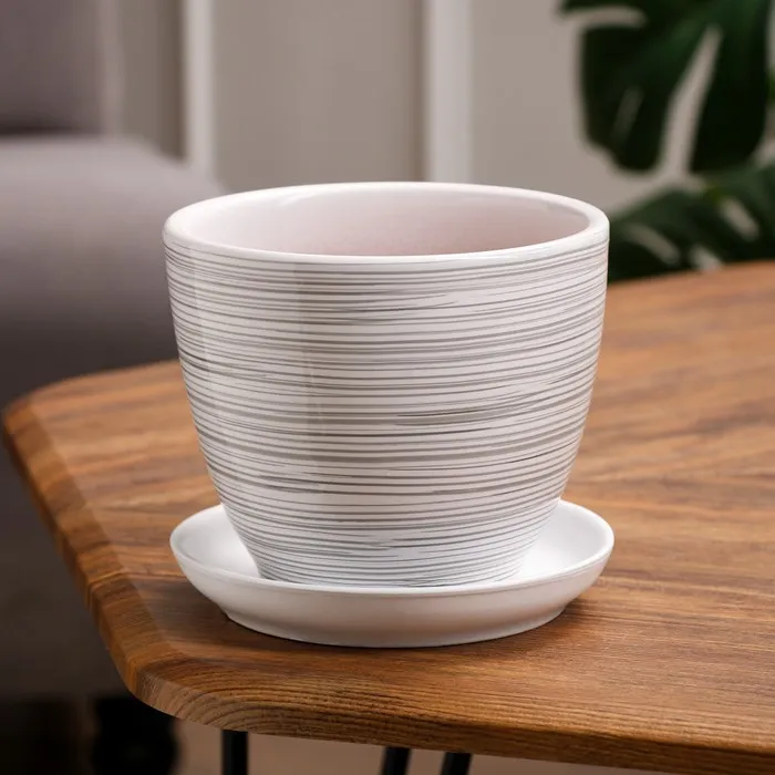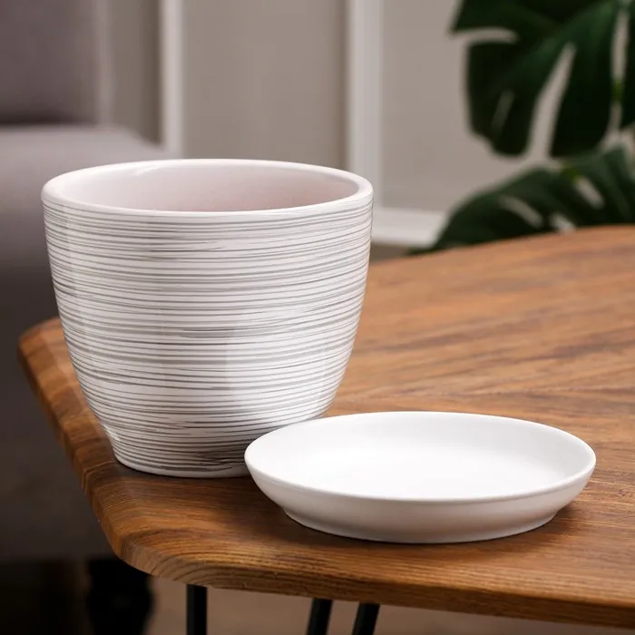 Горшок для цветов «День», керамический, с поддоном, 1 л, белый с полосками