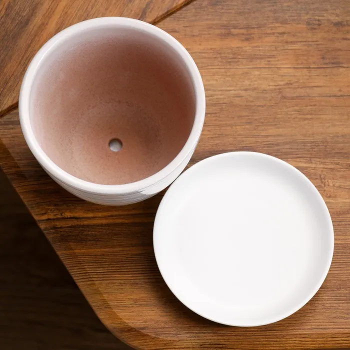 Горшок для цветов «День», керамический, с поддоном, 1 л, белый с полосками — Характеристики
