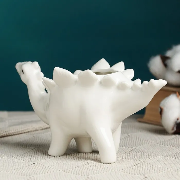 Горшок для цветов «Динозавр Стегозавр» керамический, 200 мл, 19×8×10 см, на ножках, белый — Характеристики