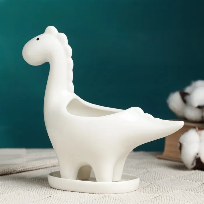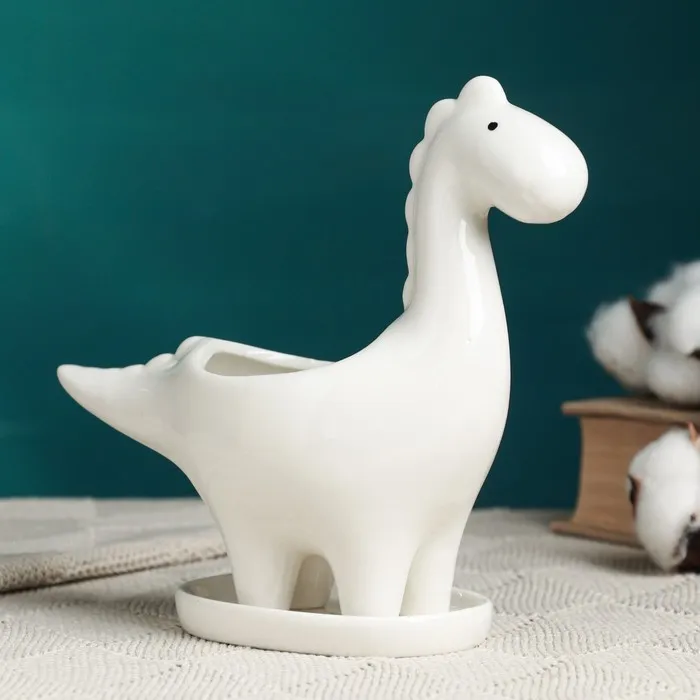 Горшок для цветов «Диплодок», керамический, 150 мл, 18×7.5×15.5 см, с поддоном, белый — Характеристики